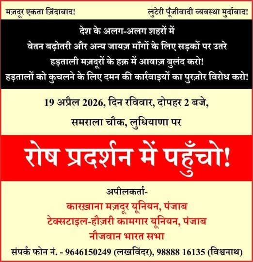 Statement of Mazdoor Adhikar Sangharsh Abhiyan (MASA) The contract system has today become the biggest tool of exploitation in the hands of capitalists. Without abolishing Read more