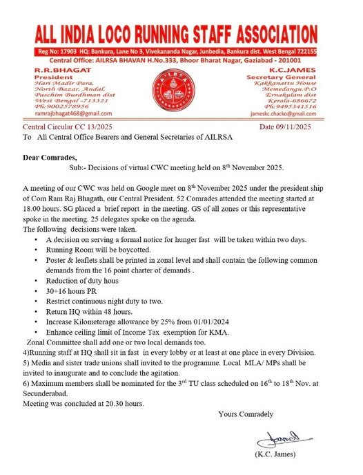 Circular of All India Loco Running Staff Association (AILRSA)