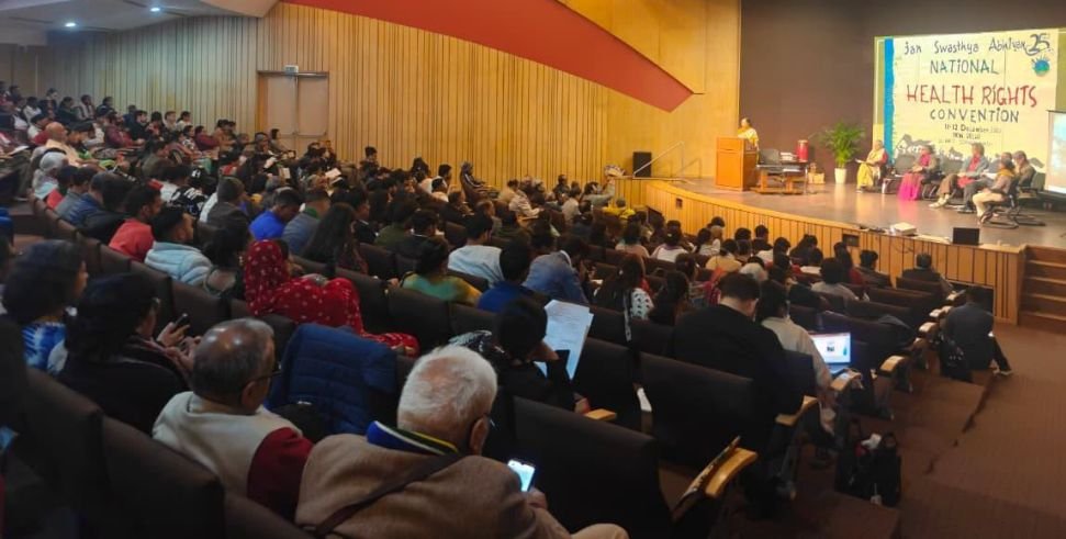 From 11 to 12 December 2025, over 550 community organisers, health workers, social activists and experts from 23 states across the country gathered in Delhi for the National Convention on Health Rights organised by Jan Swasthya Abhiyan (JSA, or People’s Health Movement, India). They consisted of a very large contingent of young activists. The convention was planned with considerable preparations over the last few months. Over two days, sessions were held on eight themes, all very important from the perspective of ensuring good quality universal and affordable public health services. The themes included strengthening public health systems and ensuring right to health, Healthcare financing, insurance, reducing out-of-pocket spending, opposition to privatisation of public health services and critique of PPPs, ensuring medicines for all, and justice and dignity for health workers.