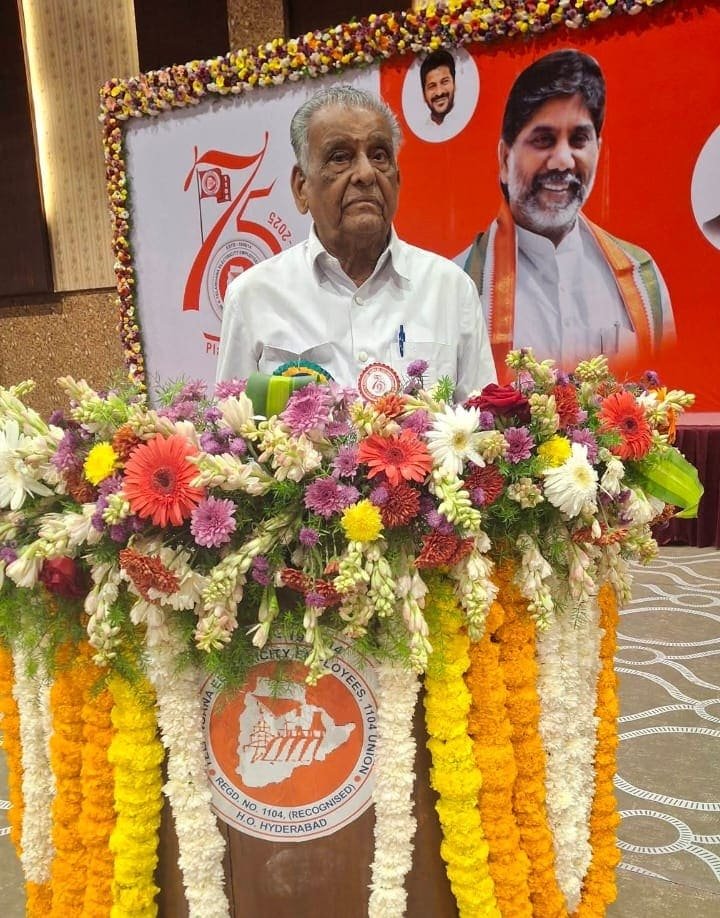 Comrade Krishna Bhoyar, addressing the gathering, said that keeping the labor movement alive in the power industry for 75 years is a great achievement by the electricity worker leaders of Telangana. Even though the direction of the labor movement has changed currently, the electricity workers’ movement in Telangana remains strong. He gave detailed information about the current situation of the power industry in the country. He appealed to the electricity workers, engineers, officers, and contract workers across the country to be prepared for a struggle against the proposed Electricity Amendment Bill 2025.