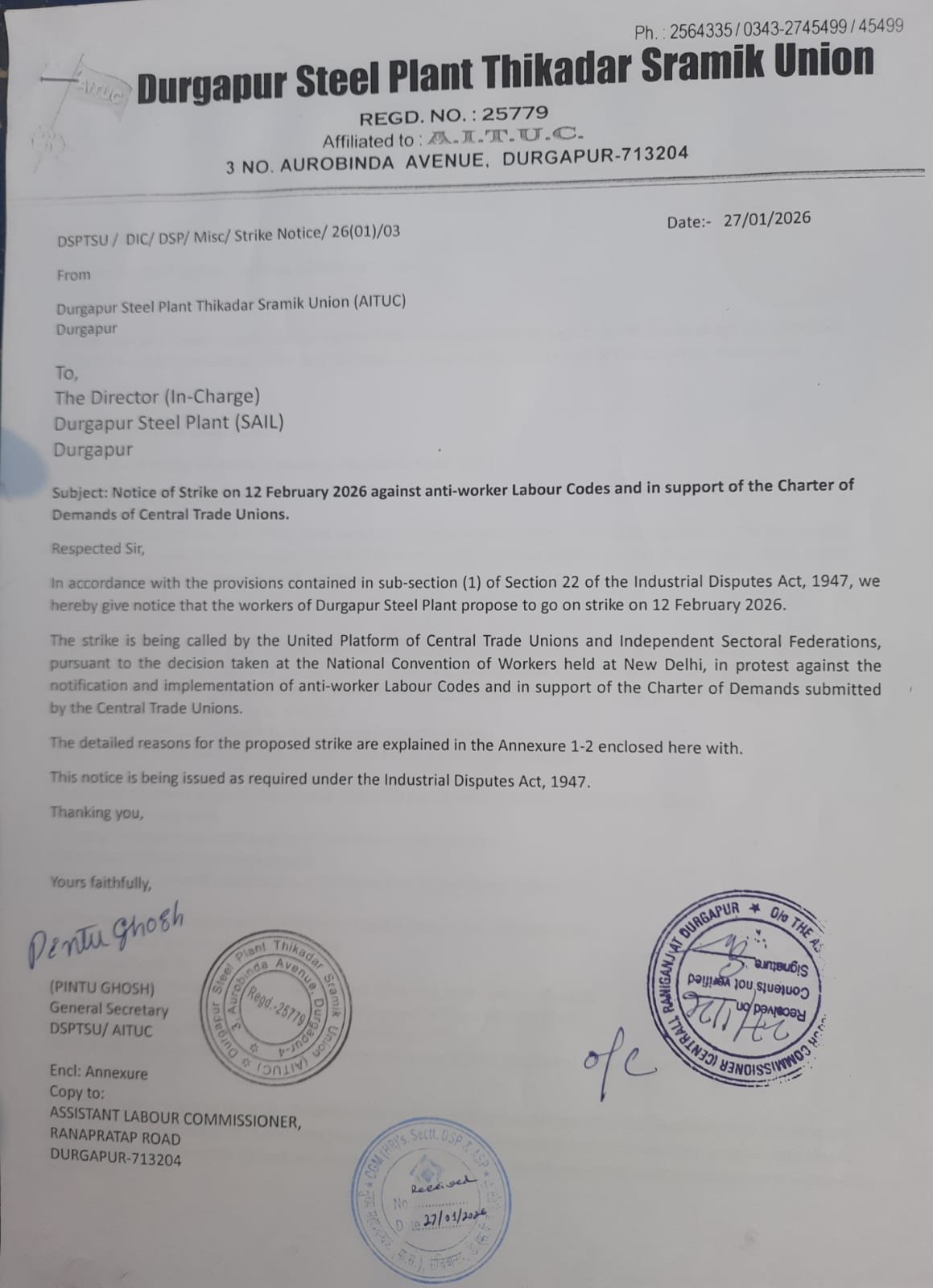 A very large number of unions representing public sector workers have sent legal notices to the respective authorities, declaring that their members will be joining the all-India strike on 12 February 2026.