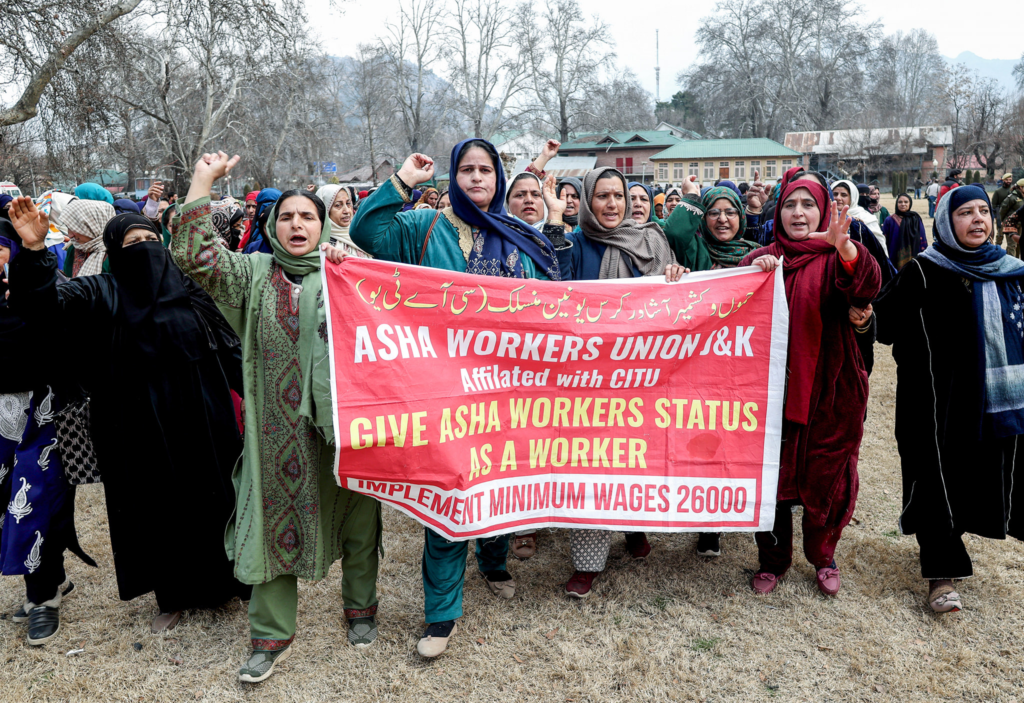 In Jammu & Kashmir, working people organized several strike demonstrations on 12 February despite living in some of the most repressive conditions. Hundreds of electricity workers, kisans, youth, social activists, health workers joined the protests, and a large number of women participated.