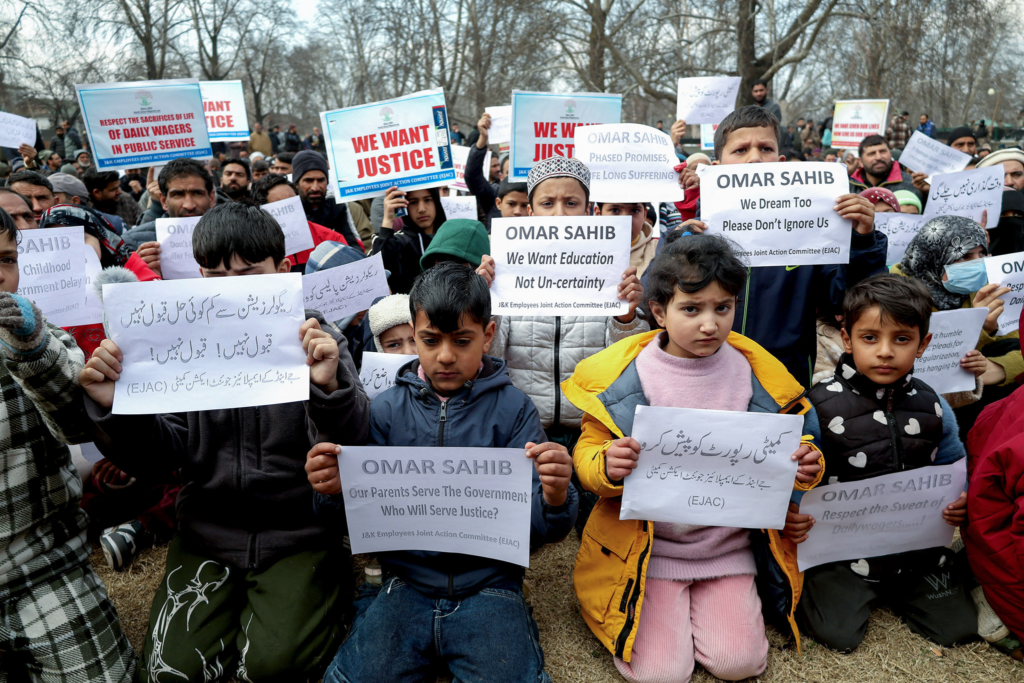 Jammu & Kashmir Coordination Committee of Trade Unions (JKCCTU) organized protests at various places in the union territory. Daily wagers in public sector and government departments also protested, with children joining some demonstrations.