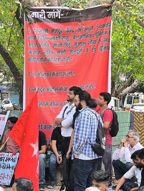 A protest was held supporting the ongoing workers’ movements across the country and denouncing the police repression against them. Protesters strongly condemned the brutal repression of peaceful workers in Gurgaon, Manesar, Noida, and other industrial areas across the country. Attempts are being made to discredit and break the workers’ struggle by blaming “outsiders”, although workers are raising their basic demands—an 8-hour workday, fair overtime pay, weekly holidays, safe working conditions, and a minimum wage of ₹30,000. At the end of the protest, a resolution was adopted that the struggle to protect workers’ rights would continue and that widespread solidarity would be built across the country.