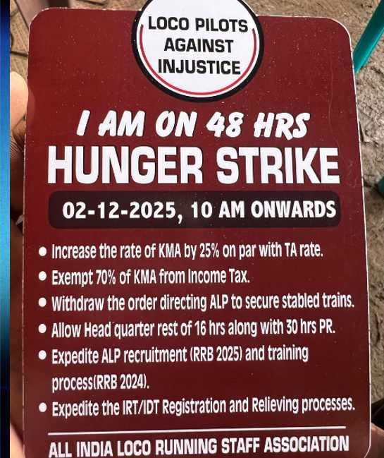 48-hour hunger fast by loco pilots and assistant loco pilots of Indian Railways all over the country from 2nd December is a cry for justice and fairness – AILRSA