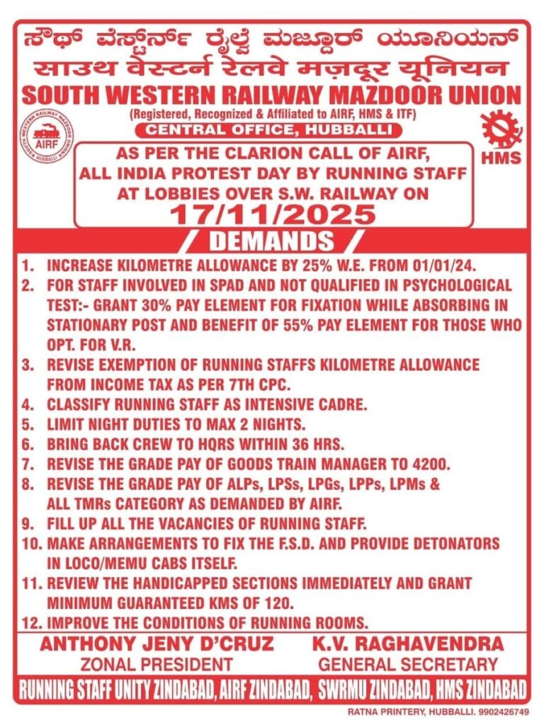 Report received from All India Guards Council (AIGC) Traian Managers (Guards) of the Indian Railways staged dharnas in front of the offices of the Read more