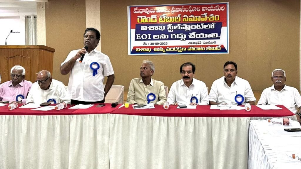 Round Table of people’s organisations held in Vijayawada, Andhra Pradesh on September 30th 2025, declares statewide movement for the protection of Visakhapatnam Steel Plant