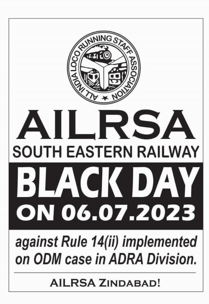 Loco pilots of South Eastern Railway to observe 6 July 2023 as Black Day to protest against unlawful removal of a train crew from service
