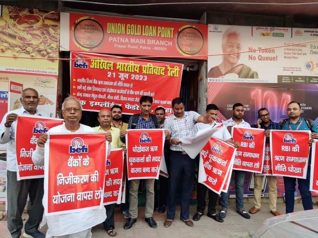 Jun 26 Bank employees held demonstration against RBI allowing compromise settlement with wilful defaulters Report by Bank Employees Federation of India (BEFI)