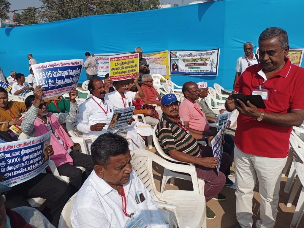 EPS-95 Pensioners Agitation for increase in the EPS 95 pension held at Ram Lila Ground, New Delhi on 7 & 8 December 2022