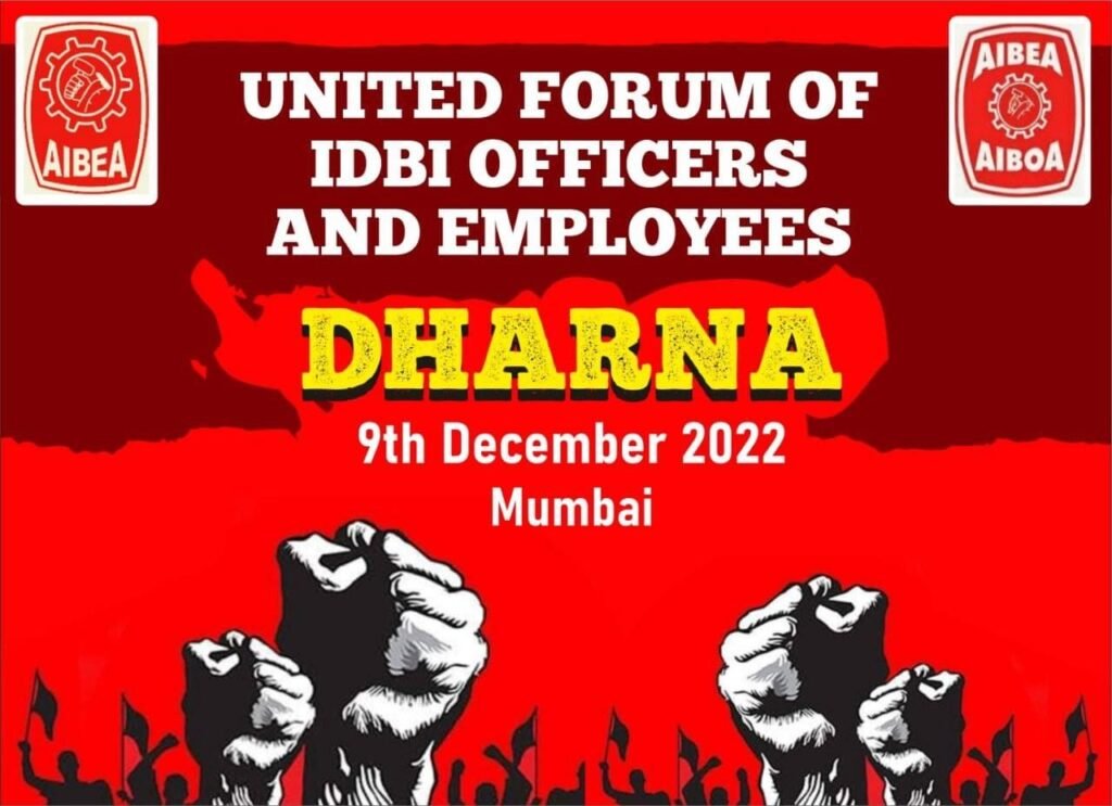 Dharna against sale of IDBI Bank to private/foreign players by Government & LIC planned on 9 December 2022 at Mumbai by United Forum of IDBI Officers and Employees