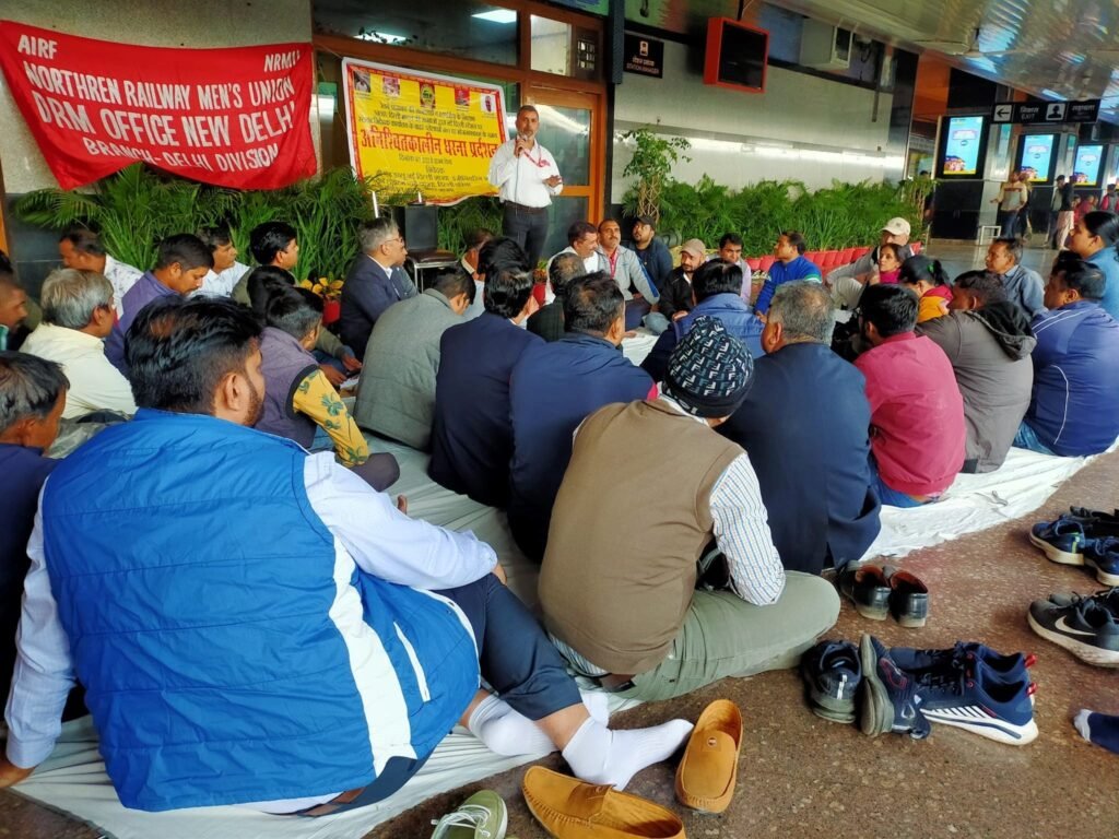 Indefinite sit-in protest by branches of Delhi Division to resolve the problems of railway employees at New Delhi station continued on the third day, 6th December 2022