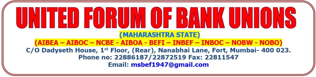 24th January, 2023 UFBU (MS)/CIR. NO. 1/2023 Dear Comrades, UFBU (MAHARASHTRA STATE) MEETING DECISIONS DEMONSTRATIONS : ON 25th & 27th January, 2023 AT 5:00 Read more