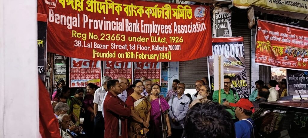 Bengal Provincial Bank Employees Association organised demonstration outside Sonali Bank on 14 November